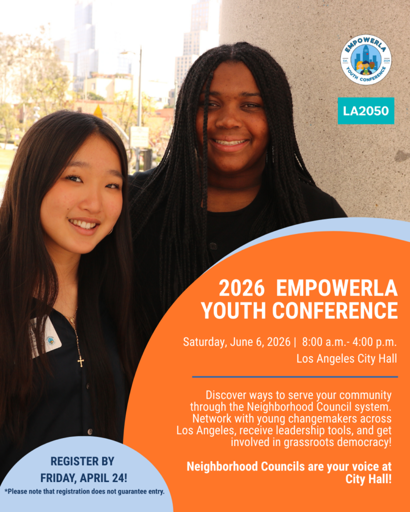 On Saturday, June 6, 2026, from 8:00 a.m. to 4:00 p.m., EmpowerLA will host 100 young people between the ages of 14 and 17 from across Los Angeles at Los Angeles City Hall to participate in a one-day event focused on civic engagement, leadership development, and local government.